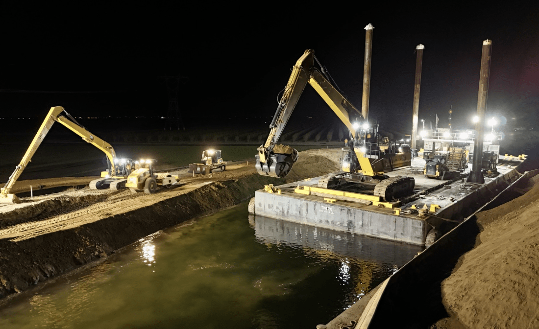 Emergency levee repair: 2,000-ft collapse on Victoria Island stabilized with rapid response and barge support.
